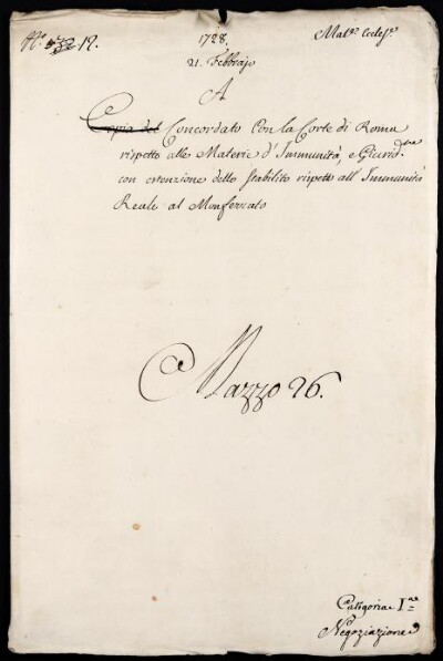 Sei in Strumenti di ricerca: Sezione Corte | Materie ecclesiastiche per categorie [Inventario n. 79.1] | Categoria 1. Negoziazione colla Corte di Roma | Mazzo 26 | Fascicolo 12