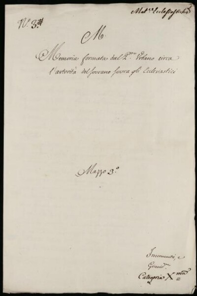Sei in Strumenti di ricerca: Sezione Corte | Materie ecclesiastiche per categorie [Inventario n. 79.1] | Categoria 10. Immunità e Giurisdizione | Mazzo 3 | Fascicolo 3