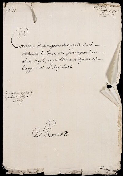 Sei in Strumenti di ricerca: Sezione Corte | Scritture riguardanti li regolari tanto di qua che di là da' monti in Materie ecclesiastiche [Inventario n. 87] | Regolari di quà dei monti | Mazzo 3. Cappucini in genere | Fascicolo 18