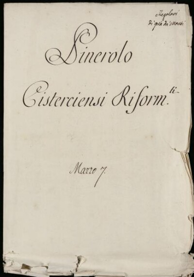 Sei in Strumenti di ricerca: Sezione Corte | Scritture riguardanti li regolari tanto di qua che di là da' monti in Materie ecclesiastiche [Inventario n. 87] | Regolari di quà dei monti | Mazzo 7 | Fascicolo 1. Cisterciensi di Pinerolo
