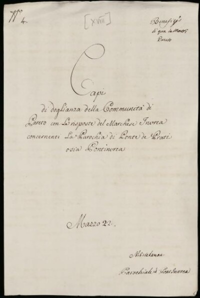 Sei in Strumenti di ricerca: Sezione Corte | Benefizi di qua dai monti in Materie ecclesiastiche [Inventario n. 81.2] | Benefizi di qua dai Monti | Mazzo 22 | Fascicolo 4. Paretto. Arcipretura