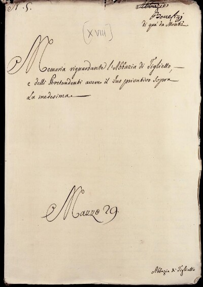 Sei in Strumenti di ricerca: Sezione Corte | Benefizi di qua dai monti in Materie ecclesiastiche [Inventario n. 81.2] | Benefizi di qua dai Monti | Mazzo 29 | Fascicolo 5. Tiglietto. Abbazia di S.ta Maria