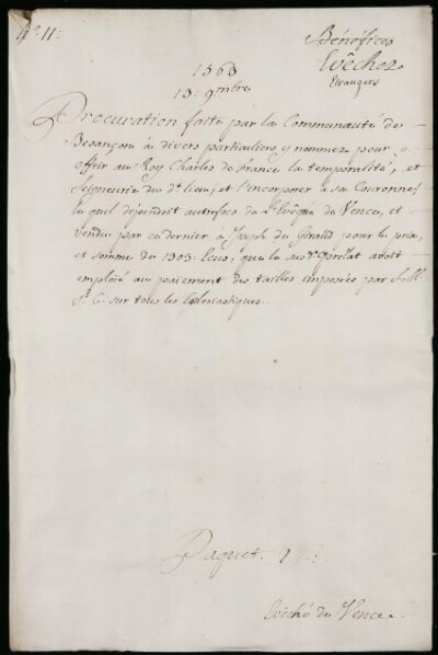 Sei in Strumenti di ricerca: Sezione Corte | Arcivescovadi e vescovadi stranieri in Materie ecclesiastiche [Inventario n. 80.2] | Senes, Vence, Vienne en Dauphine | Mazzo 1 | Fascicolo 11. Eveché de Vence