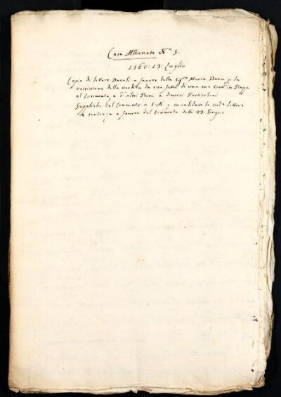 Alle carte prodotte dal Governo Centrale risultano talora uniti atti delle corporazioni religiose soppresse nel secolo XVIII e nel periodo napoleonico.