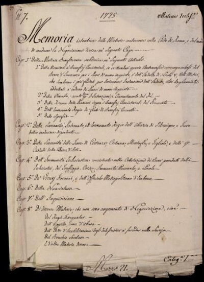 Sei in Strumenti di ricerca: Sezione Corte  | Materie ecclesiastiche per categorie [Inventario n. 79.1] | Categoria 1. Negoziazione colla Corte di Roma | Mazzo 21 | Fascicolo 7