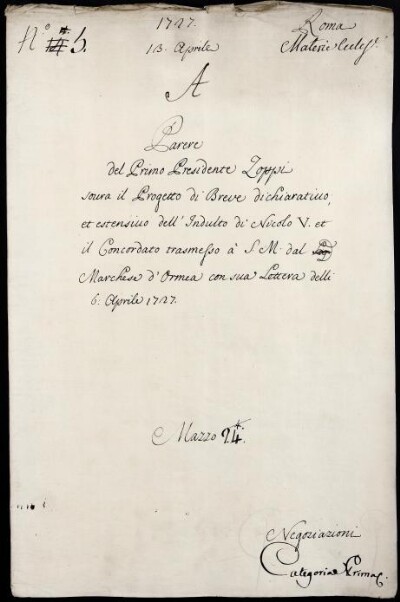 Sei in Strumenti di ricerca: Sezione Corte | Materie ecclesiastiche per categorie [Inventario n. 79.1] | Categoria 1. Negoziazione colla Corte di Roma | Mazzo 24 | Fascicolo 5