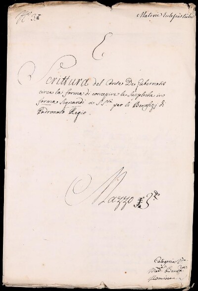 Sei in Strumenti di ricerca: Sezione Corte | Materie ecclesiastiche per categorie [Inventario n. 79.1] | Categoria 2. Materia Benefiziaria | Mazzo 3 | Fascicolo 3