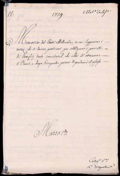 Sei in Strumenti di ricerca: Sezione Corte | Materie ecclesiastiche per categorie [Inventario n. 79.1] | Categoria 6. Regio exequatur | Mazzo 2 | Fascicolo 12