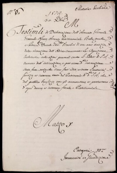 Sei in Strumenti di ricerca: Sezione Corte | Materie ecclesiastiche per categorie [Inventario n. 79.1] | Categoria 10. Immunità e Giurisdizione | Mazzo 1 | Fascicolo 6