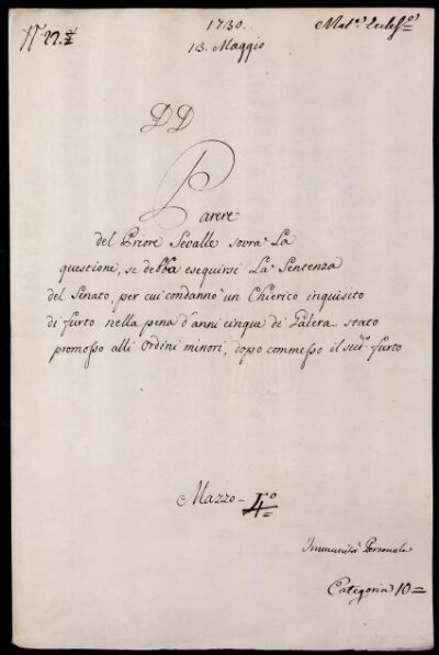 Sei in Strumenti di ricerca: Sezione Corte | Materie ecclesiastiche per categorie [Inventario n. 79.1] | Categoria 10. Immunità e Giurisdizione | Mazzo 4 | Fascicolo 22