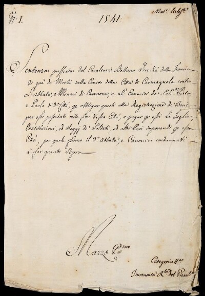 Sei in Strumenti di ricerca: Sezione Corte | Materie ecclesiastiche per categorie [Inventario n. 79.1] | Categoria 11. Immunità Reale del Piemonte | Mazzo 1 | Fascicolo 1