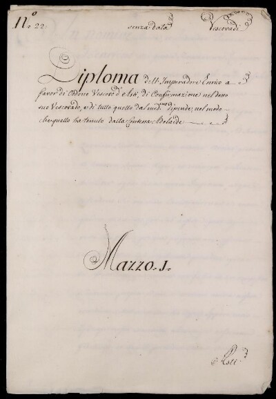 Sei in Strumenti di ricerca: Sezione Corte | Arcivescovadi e vescovadi in Materie ecclesiastiche [Inventario n. 80] | Vescovado di Asti | Mazzo 1 | Fascicolo 22