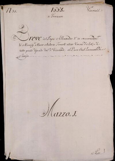 Sei in Strumenti di ricerca: Sezione Corte | Arcivescovadi e vescovadi in Materie ecclesiastiche [Inventario n. 80] | Vescovado di Asti | Mazzo 1 | Fascicolo 35