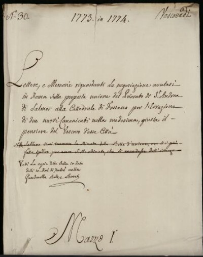 Sei in Strumenti di ricerca: Sezione Corte | Arcivescovadi e vescovadi in Materie ecclesiastiche [Inventario n. 80] | Vescovado di Fossano | Mazzo 1 | Fascicolo 30