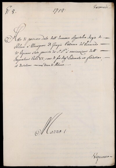 Sei in Strumenti di ricerca: Sezione Corte | Arcivescovadi e vescovadi in Materie ecclesiastiche [Inventario n. 80] | Vescovado di Vigevano | Mazzo 1 | Fascicolo 8