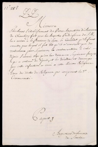 Sei in Strumenti di ricerca: Sezione Corte | Scritture riguardanti li regolari tanto di qua che di là da' monti in Materie ecclesiastiche [Inventario n. 87] | Regolari di là dai monti | Mazzo 1 | Fascicolo 2. Augustins Déchaussez de Chambery