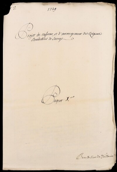 Sei in Strumenti di ricerca: Sezione Corte | Scritture riguardanti li regolari tanto di qua che di là da' monti in Materie ecclesiastiche [Inventario n. 87] | Regolari di là dai monti | Mazzo 1 | Fascicolo 2. Benedictins de Thonon