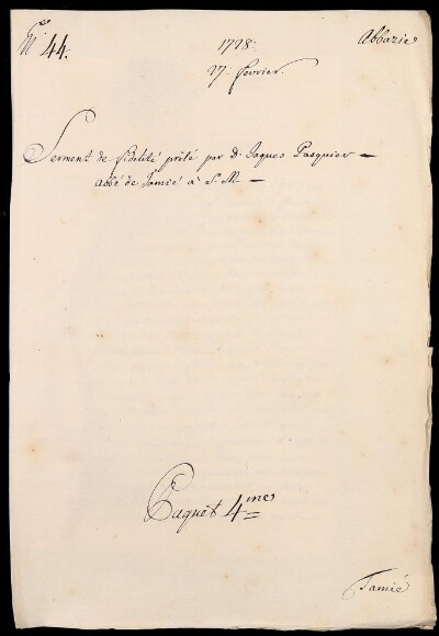 Sei in Strumenti di ricerca: Sezione Corte | Scritture riguardanti li regolari tanto di qua che di là da' monti in Materie ecclesiastiche [Inventario n. 87] | Regolari di là dai monti | Mazzo 4 | Fascicolo 44. Citeaux de Tamié. Abbaie de Notre Dame