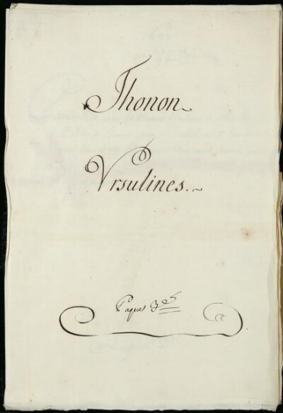 Sei in Strumenti di ricerca: Sezione Corte | Scritture riguardanti le monache tanto di qua che di là da' monti in Materie ecclesiastiche [Inventario n. 88] | Monache di là da'Monti | Mazzo 3 | Fascicolo 1. Thonon Ursulines
