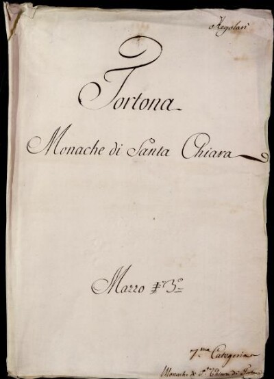 Sei in Strumenti di ricerca: Sezione Corte | Scritture riguardanti le monache tanto di qua che di là da' monti in Materie ecclesiastiche [Inventario n. 88] | Monache di qua da' monti | Mazzo 3 | Fascicolo 1. Tortona Monache di S.ta Chiara
