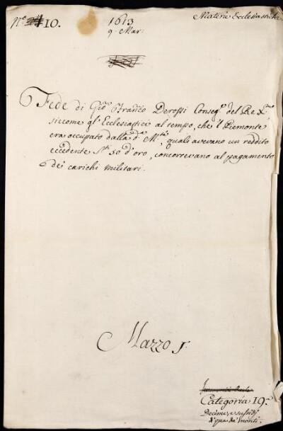 Sei in Strumenti di ricerca: Sezione Corte | Materie ecclesiastiche per categorie [Inventario n. 79.2] | Categoria 19. Decime, sussidi, e contribuzioni | Mazzo 1 | Fascicolo 10