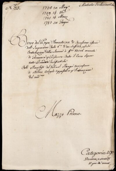 Sei in Strumenti di ricerca: Sezione Corte | Materie ecclesiastiche per categorie [Inventario n. 79.2] | Categoria 19. Decime, sussidi, e contribuzioni | Mazzo 1 | Fascicolo 25