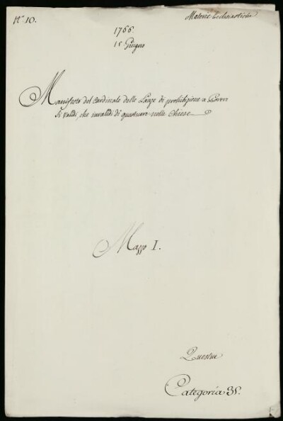 Sei in Strumenti di ricerca: Sezione Corte | Materie ecclesiastiche per categorie [Inventario n. 79.2] | Categoria 35. Questue | Mazzo 1 | Fascicolo 10