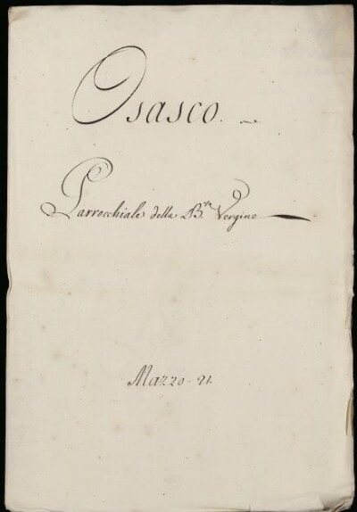 Sei in Strumenti di ricerca: Sezione Corte | Benefizi di qua dai monti in Materie ecclesiastiche [Inventario n. 81.2] | Benefizi di qua dai Monti | Mazzo 21 | Fascicolo 1. Osasco. Parrochiale della Beat.ma Vergine