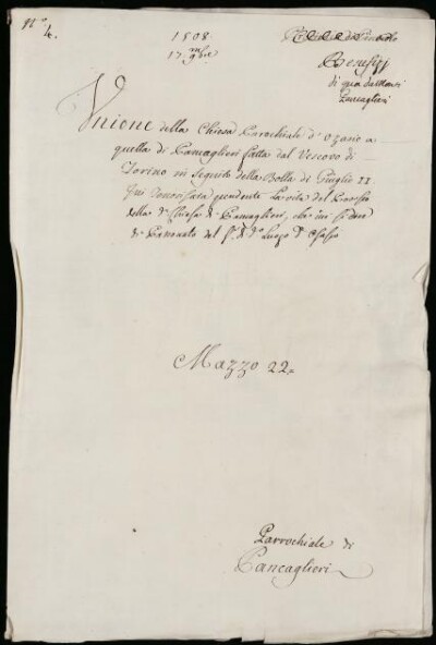 Sei in Strumenti di ricerca: Sezione Corte | Benefizi di qua dai monti in Materie ecclesiastiche [Inventario n. 81.2] | Benefizi di qua dai Monti | Mazzo 22 | Fascicolo 4. Pancaglieri. Parrochiale