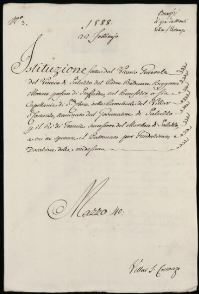 Sei in Strumenti di ricerca: Sezione Corte | Benefizi di qua dai monti in Materie ecclesiastiche [Inventario n. 81.2] | Benefizi di qua dai Monti | Mazzo 40 | Fascicolo 3. Villar S.Costanzo. Capellania di S.ta Croce e Priorato di S.t Costanzo