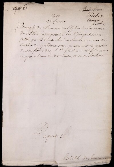 Sei in Strumenti di ricerca: Sezione Corte | Arcivescovadi e vescovadi stranieri in Materie ecclesiastiche [Inventario n. 80.2] | Lausanne | Mazzo 1 | Fascicolo 6