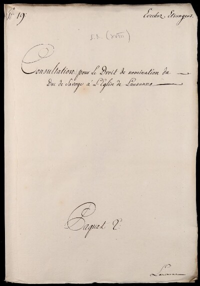 Sei in Strumenti di ricerca: Sezione Corte | Arcivescovadi e vescovadi stranieri in Materie ecclesiastiche [Inventario n. 80.2] | Lausanne | Mazzo 2 | Fascicolo 19