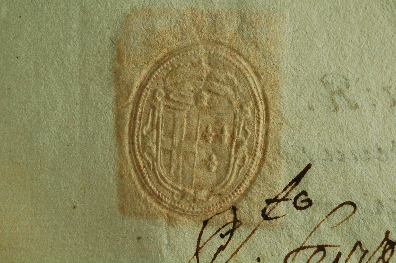 Scudo arrotondato a cartocci, partito, al 1° di Savoia moderna, al 2° di Francia moderna; timbrato dalla corona reale