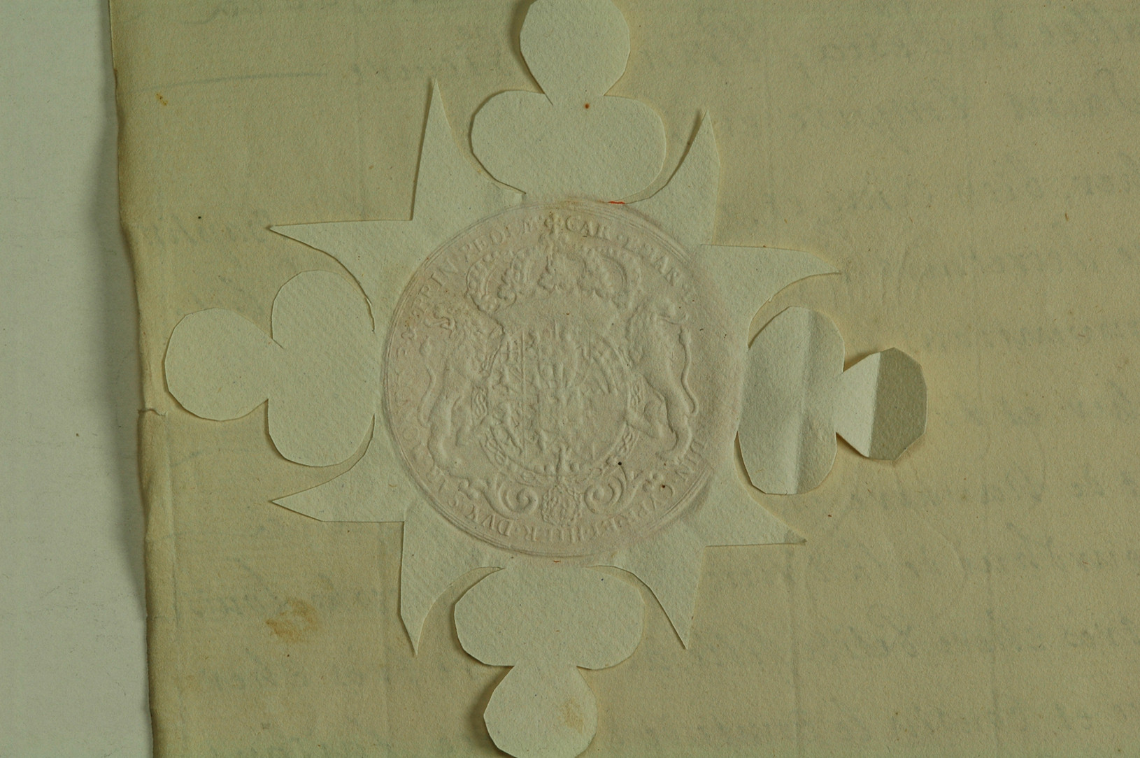 La carta è tagliata in forma di croce dei santi Maurizio e Lazzaro